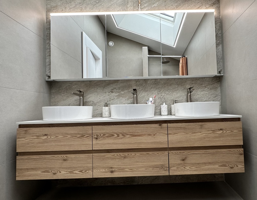 Rénovation complète d’une salle de bain avec installation de plomberie moderne.
